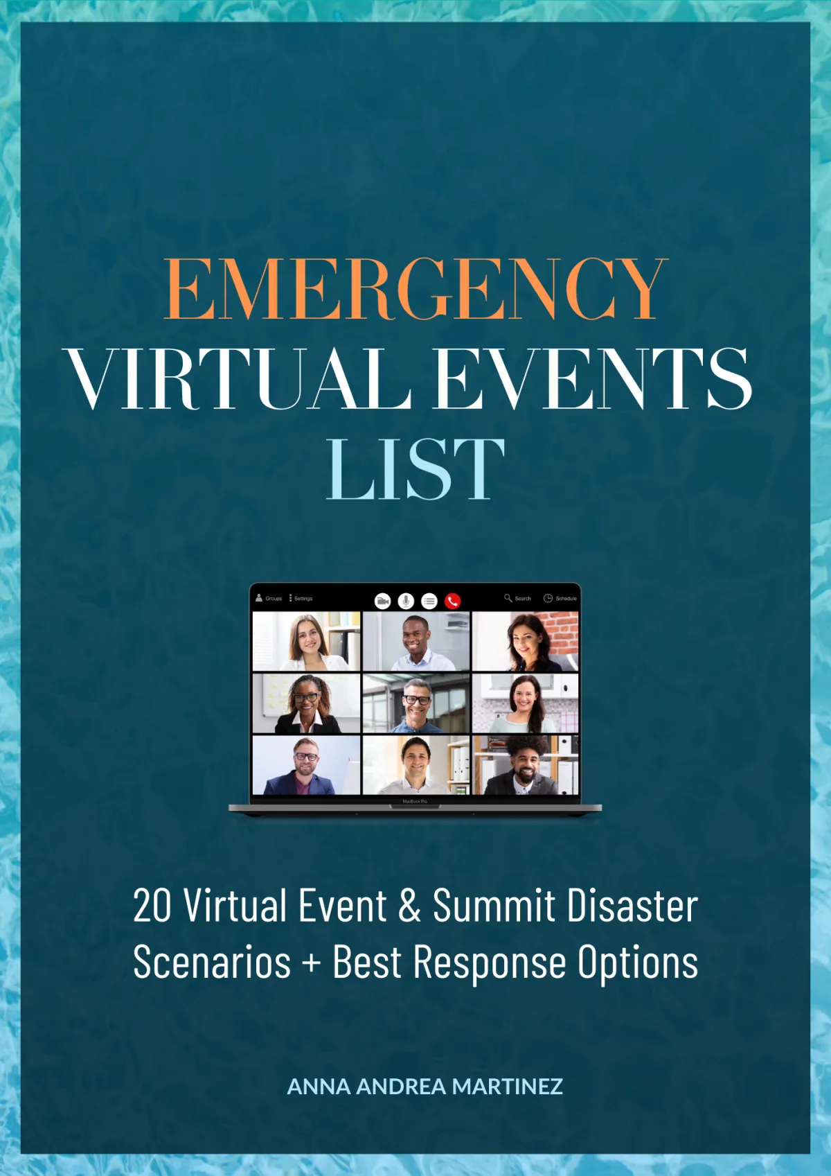 Get the quick tips on what to do when drama and craziness comes up during your virtual events. Experience flawless virtual events, even with last minute drama or issues. Grab the Emergency Virtual Events List for rapid, professional event solutions.